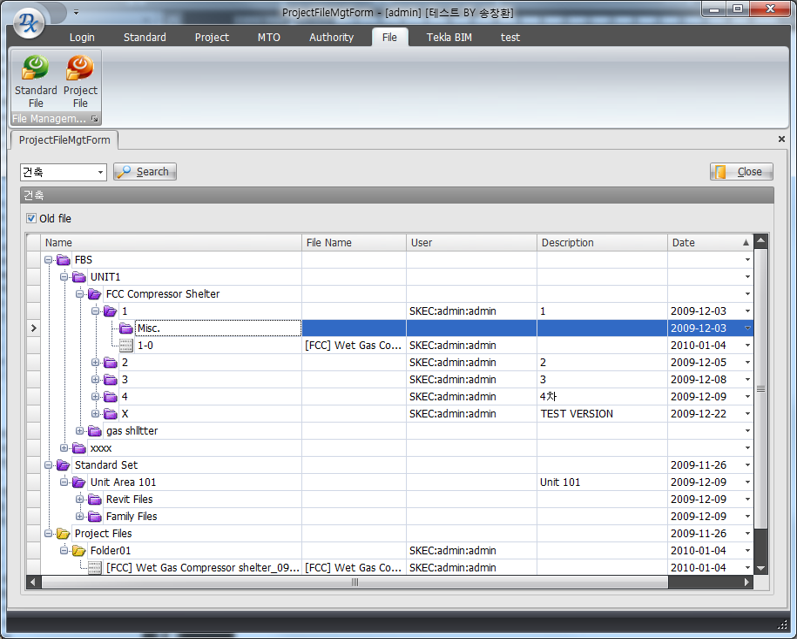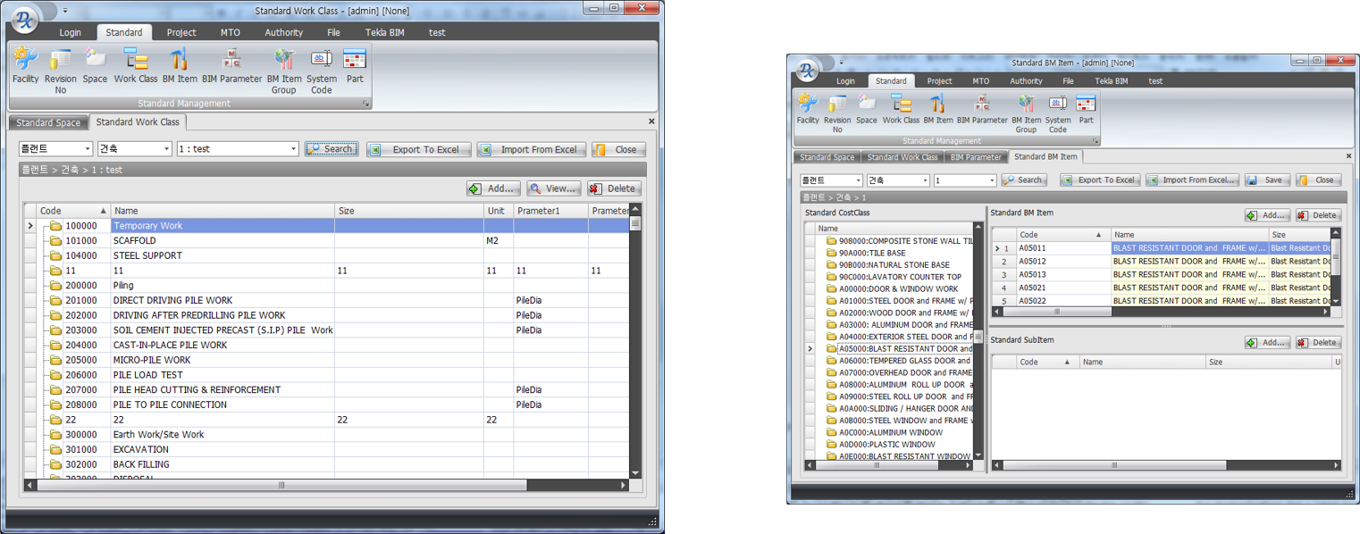 표준 분류 관리(시설물, 공간, 공종, 작업)
