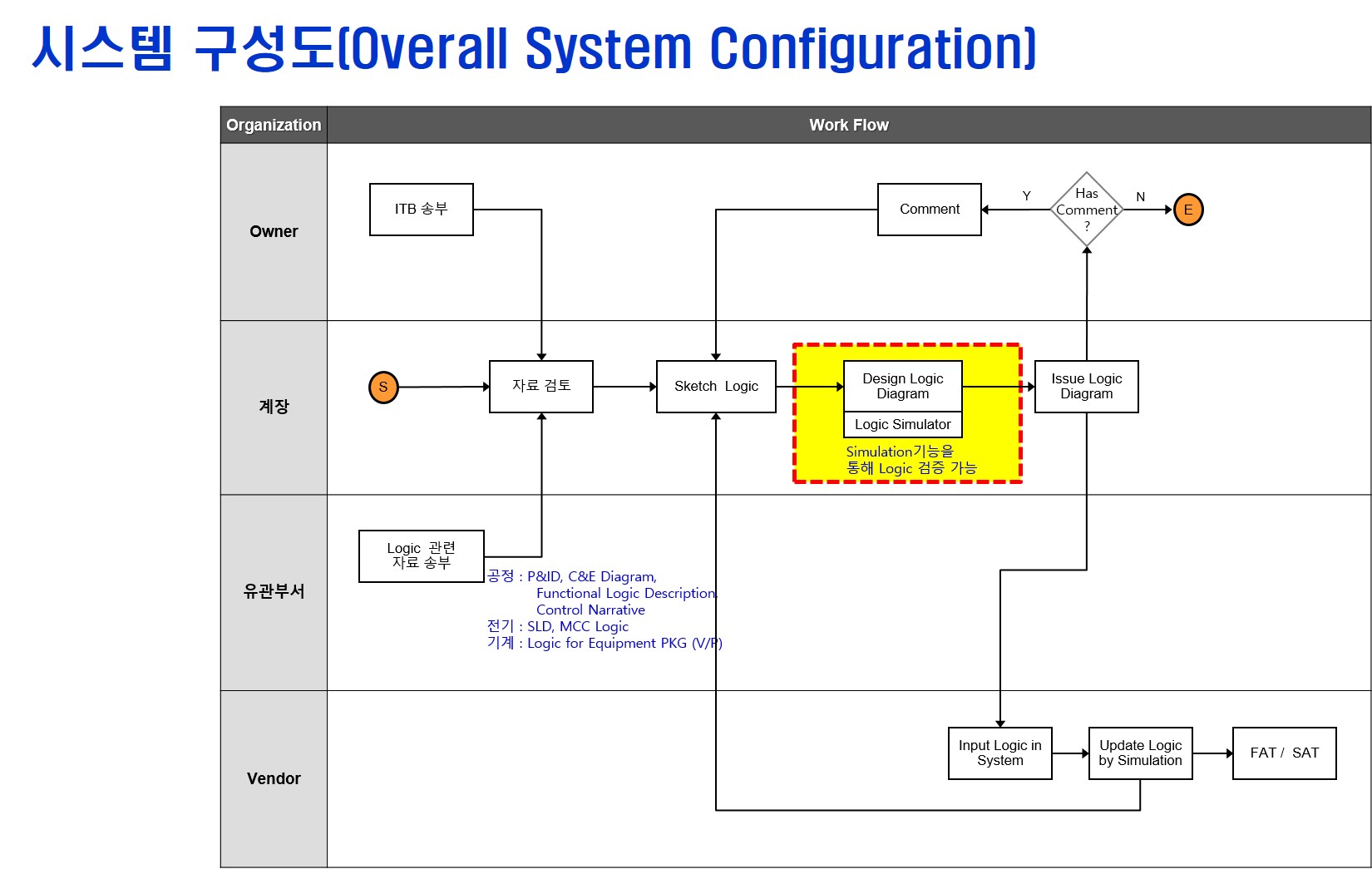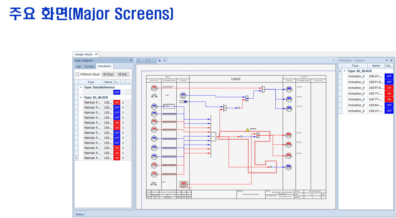 계장 Engineer가 ESD Logic 혹은 DCS Sequence logic diagram 작성시 여러 가지 Case에 대해 직접 Simulation하고 Logic Diagram을 작성할 수 있는 시스템이다.