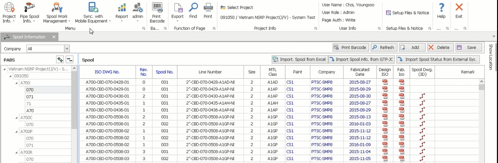 ITB/계약서에 Spool Traceability 역무 및 시스템 사용 조건 충족