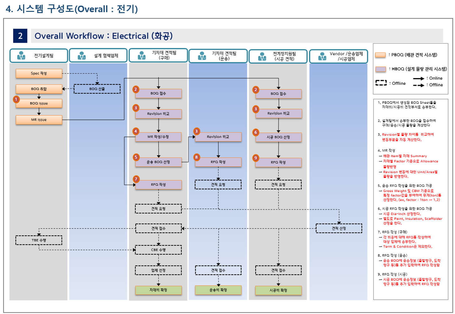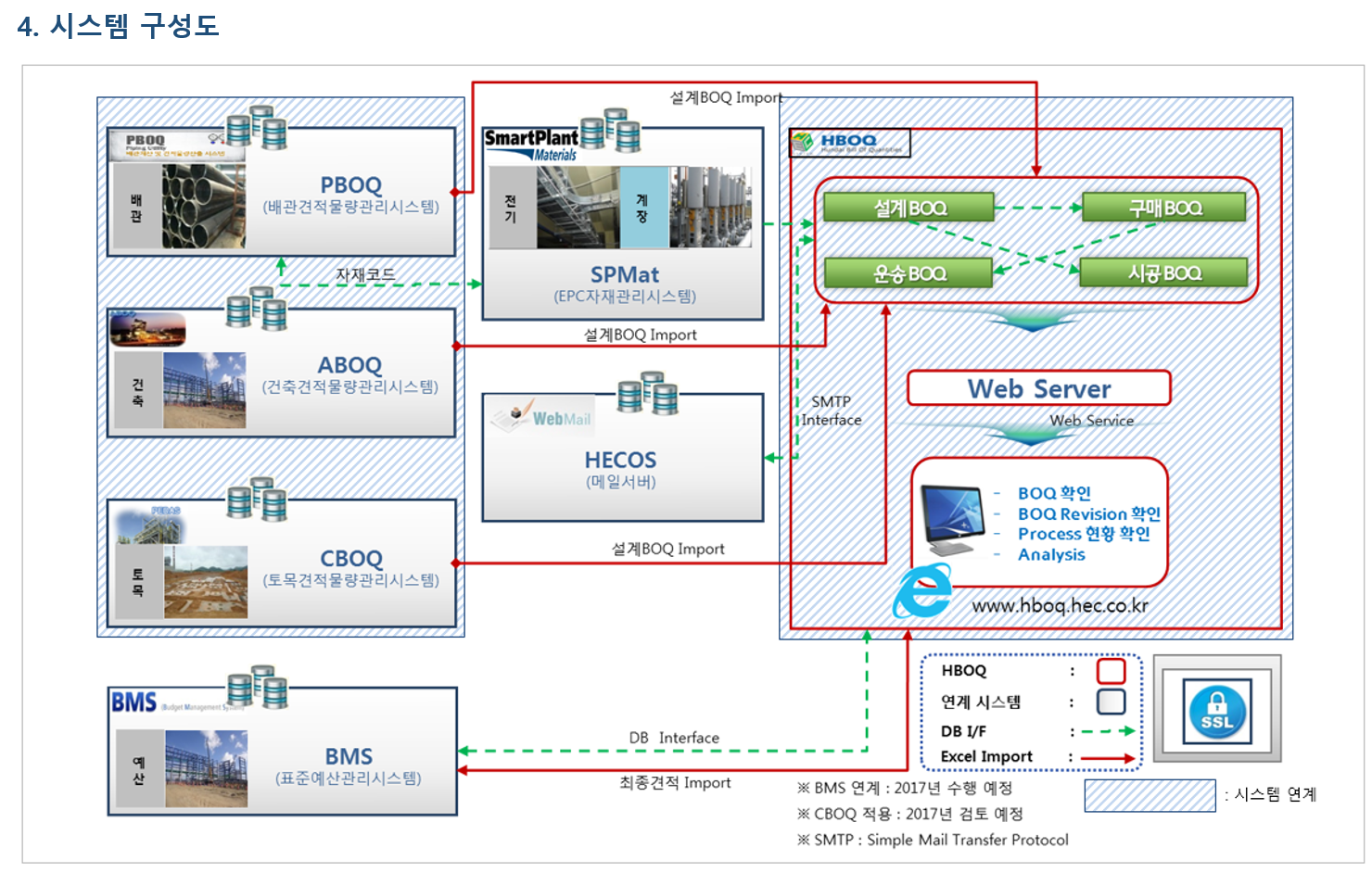IT 시스템을 활용한 BOQ 작성 및 출력, 실시간 데이터 공유를 통한 BOQ 자동축척으로 변경 물량에 대한 관리를 하고자 함