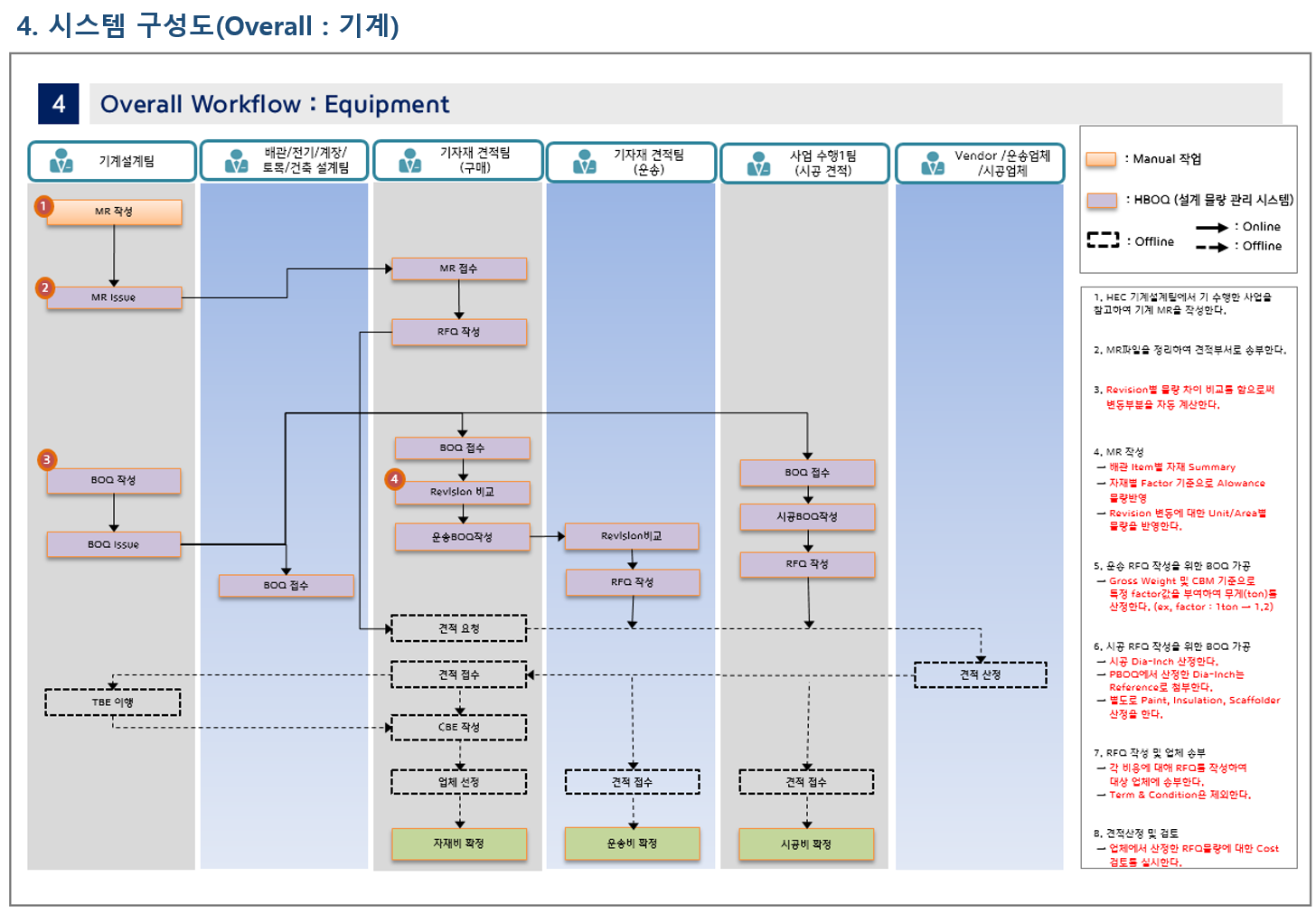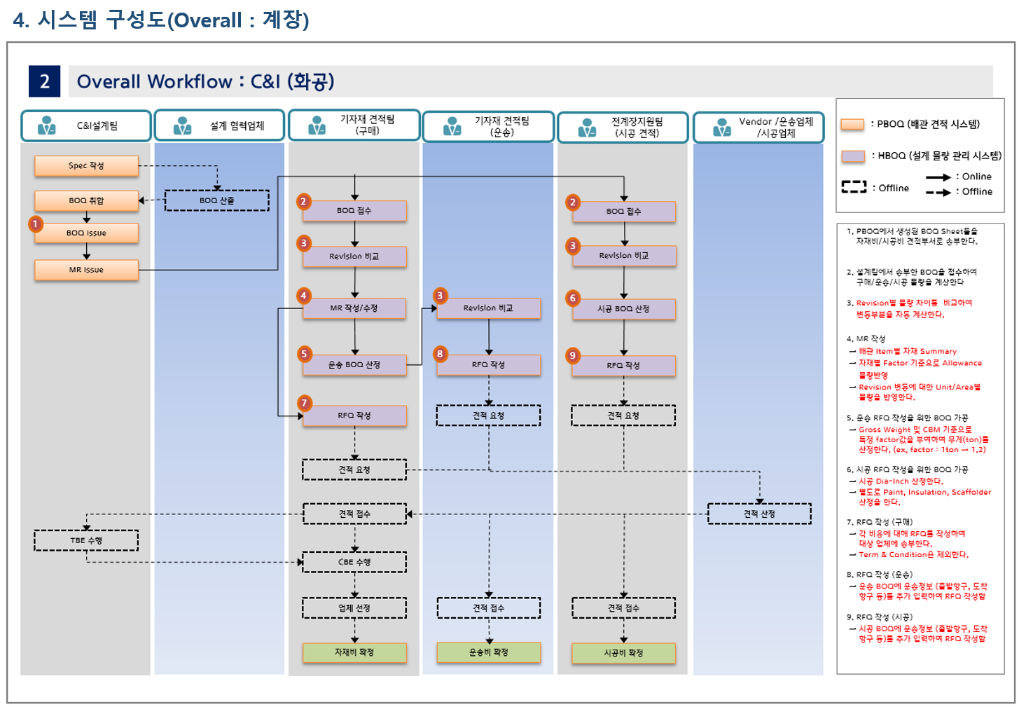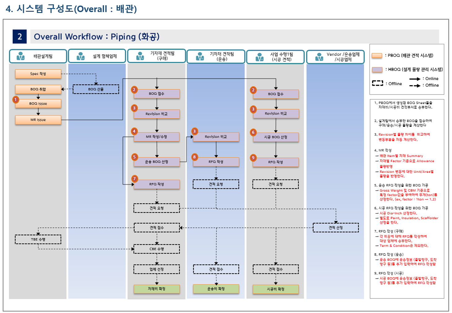 견적, 입찰 업무 표준화 및 BOQ 관리.Revision 관리 자동화를 통한 M/H 절감.