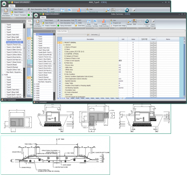 This system is the plant civil engineering estimate quantity calculate system managing input values and calculating quantities in Data Base, and generating detailed and automatic calculating by each Type and WBS.