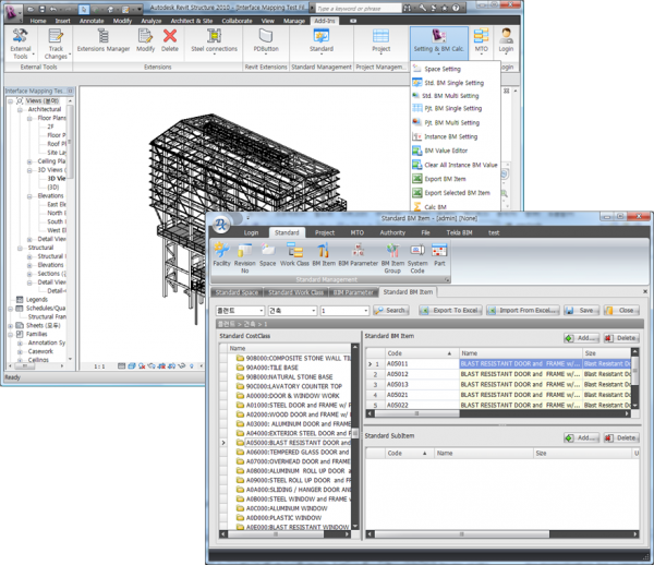 BIM system based on Revit(BIM software) developed by Autodesk. This system is the BM automatic calculation and integration management system by Family-based modeling in Revit, and is designed to be used integrally by collaborating companies and related departments. The model can be easily converted to Tekla and PDS, and this will reduce unnecessary modeling work on work processes.